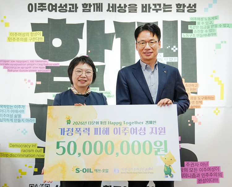 S-OIL(대표: 안와르 알 히즈아지)은 5일 한국이주여성인권센터(대표: 허오영숙)에 다문화 가정의 이주 여성을 돕기 위한 후원금 5천만원을 전달했다.